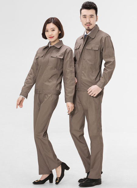 卡其色長(zhǎng)袖夾克工作服訂做款式模板圖